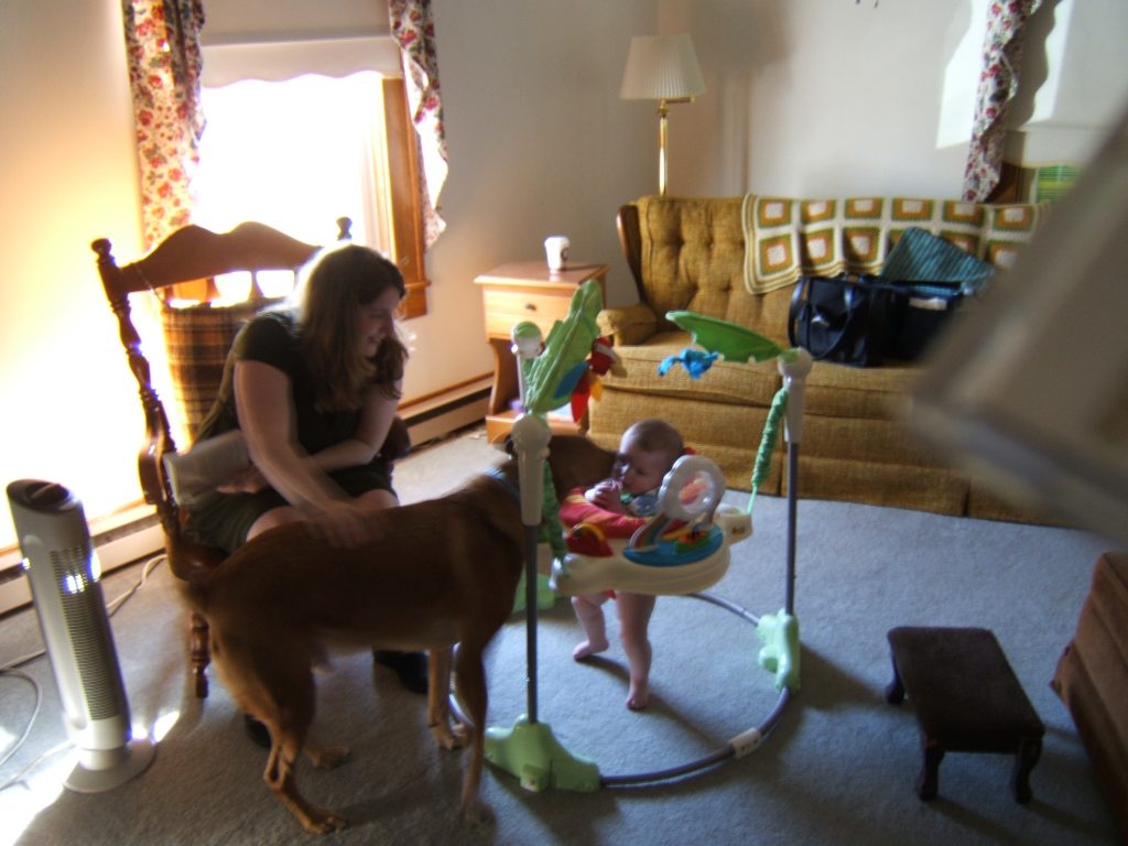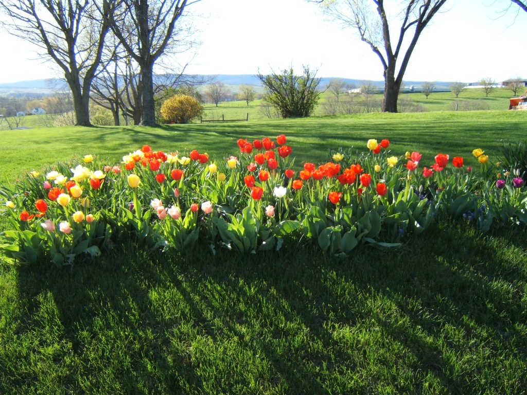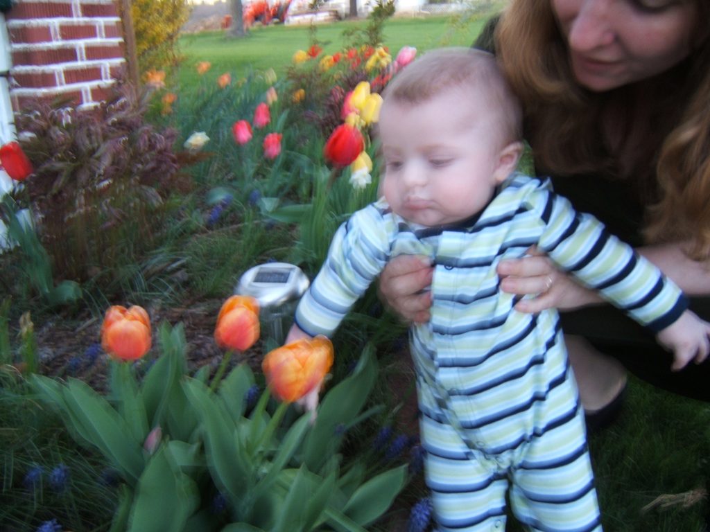 In 2008 we rented a van and drove it down to Timberville so we could show our new baby some cows and the wonderful odor of a poultry plant. It was early Spring and the flowers were blooming.